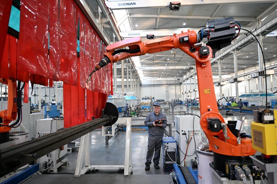 2月18日,工人在唐山國家高新技術(shù)產(chǎn)業(yè)開發(fā)區(qū)中信重工開誠智能裝備有限公司車間內(nèi)調(diào)試機器人產(chǎn)品。新華社記者 牟宇 攝