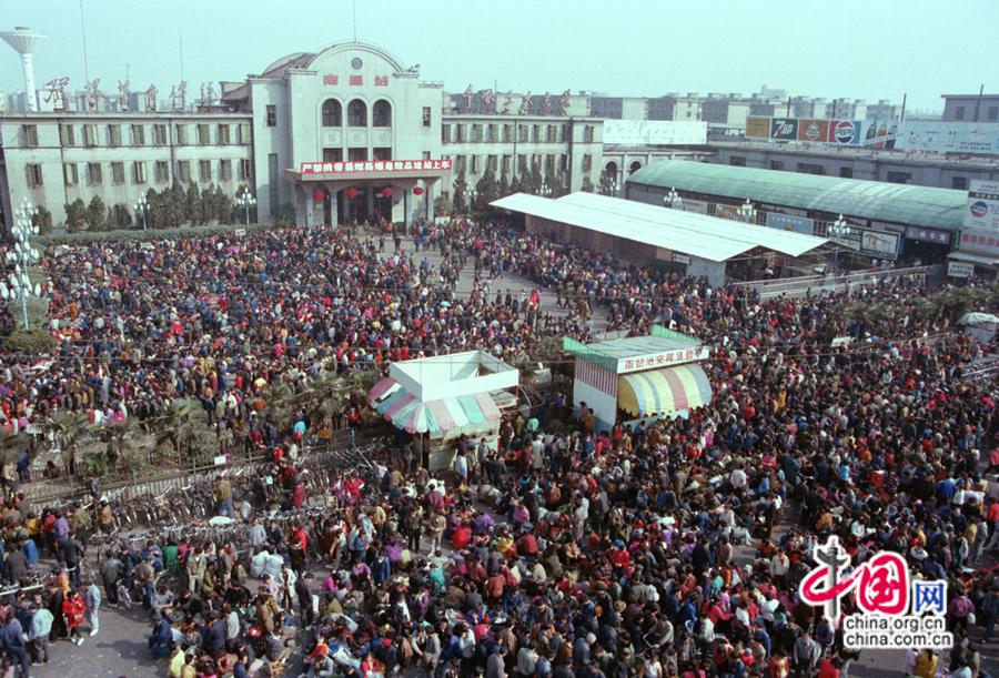 1993年春運(yùn),南昌火車(chē)站迎來(lái)首次務(wù)工潮。中國(guó)網(wǎng)發(fā) 南鐵供圖