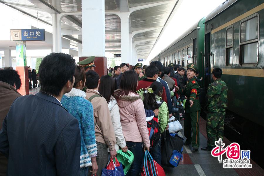 2007春運(yùn),旅客在吉安站排隊(duì)登乘“綠皮車(chē)”。中國(guó)網(wǎng)發(fā) 南鐵供圖