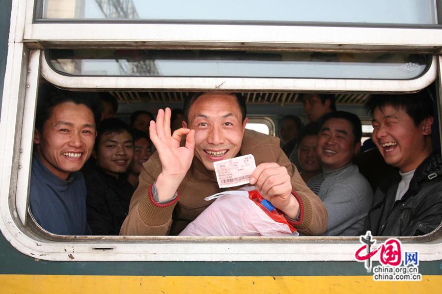 2010年春運(yùn),旅客展示自己的火車(chē)票。中國(guó)網(wǎng)發(fā) 南鐵供圖