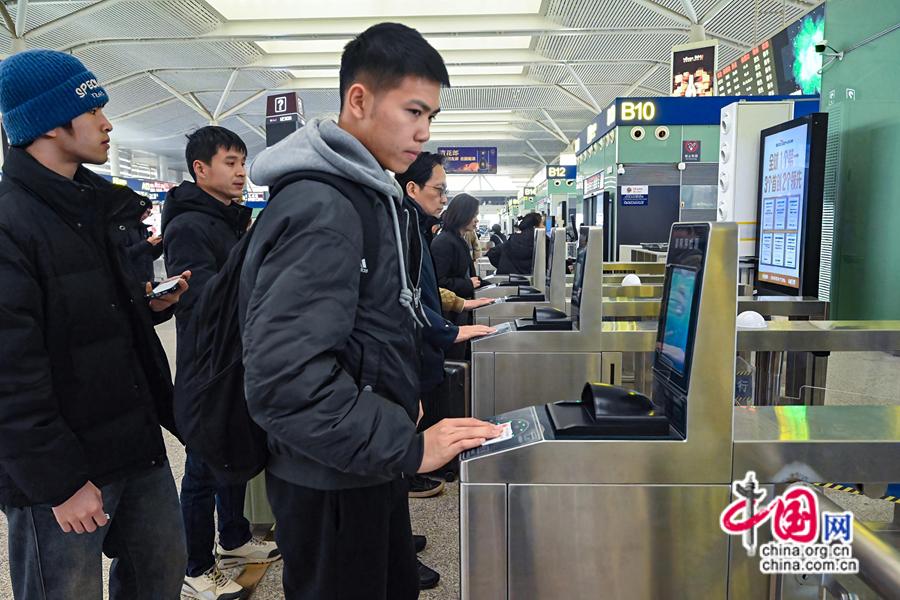 2025年春運(yùn)期間,旅客南昌西站候車(chē)廳刷身份證驗(yàn)票。中國(guó)網(wǎng)發(fā) 黃浩/攝