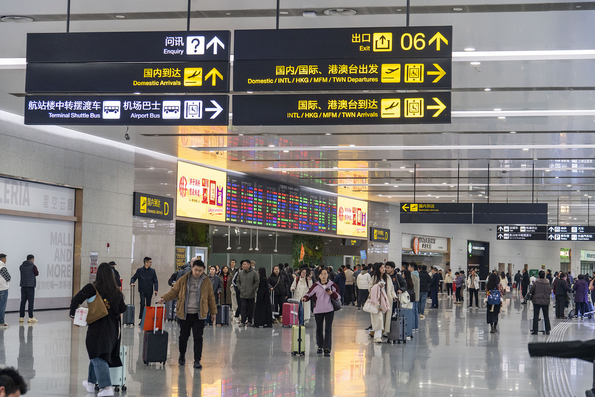 2025年2月16日,重慶江北國(guó)際機(jī)場(chǎng),乘客人來(lái)人往。