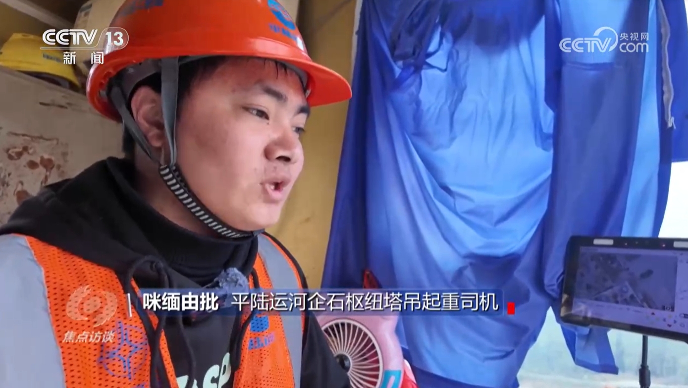 平陸運(yùn)河企石樞紐塔吊起重司機(jī)咪緬由批:“第一次爬的時(shí)候是40米的那種(塔吊),剛開始就是特別害怕,腿也是發(fā)抖,一步一個(gè)腳印,就是冒著汗慢慢爬上來(lái),然后練成了這個(gè)膽量,慢慢就習(xí)以為常了。”