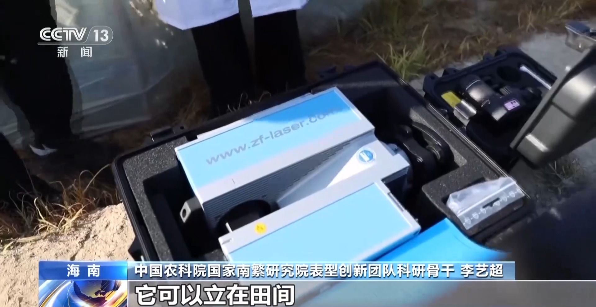 這個(gè)是我們一個(gè)地面激光雷達(dá),它可以立在田間,對(duì)整個(gè)田塊進(jìn)行精確掃描。