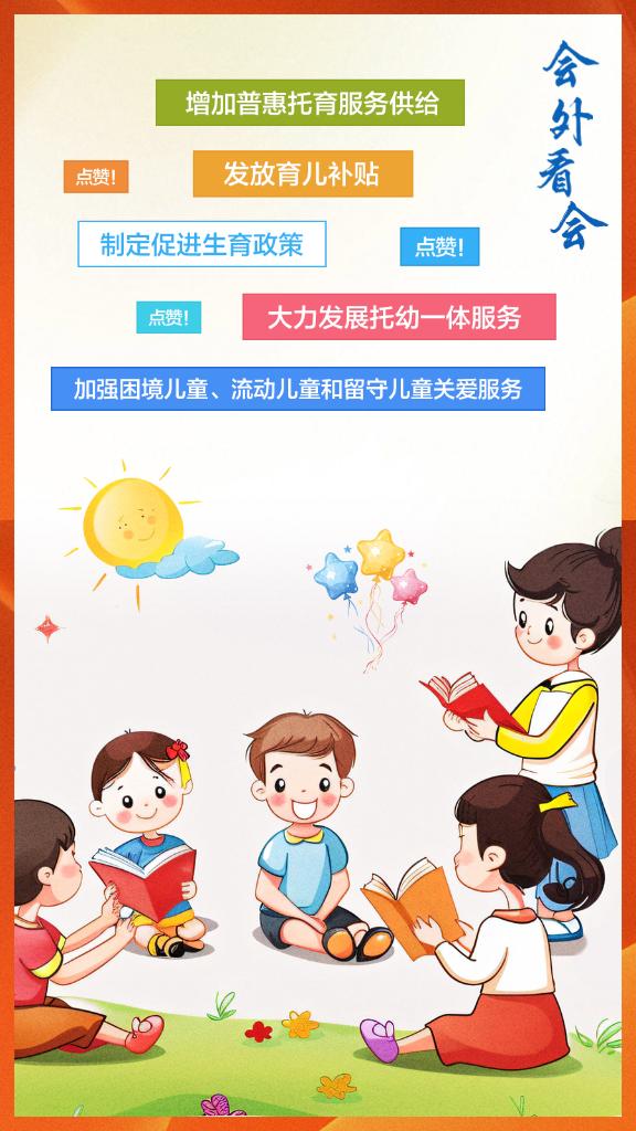 孩子是祖國的花朵。制定促進(jìn)生育政策,發(fā)放育兒補(bǔ)貼,大力發(fā)展托幼一體服務(wù),增加普惠托育服務(wù)供給……今年政府工作報(bào)告中關(guān)注孩子的這些提法,會(huì)外群眾怎么看?