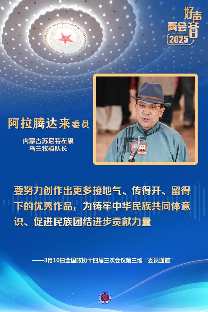 “在內(nèi)蒙古大地上,活躍著75支烏蘭牧騎隊伍,有3000多名隊員,每年開展演出1萬多場?!卑⒗v達來委員說,要努力創(chuàng)作出更多接地氣、傳得開、留得下的優(yōu)秀作品,為鑄牢中華民族共同體意識、促進民族團結進步貢獻力量。