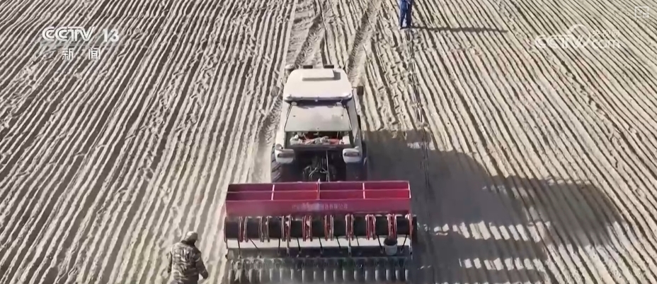 近日,甘肅酒泉金塔縣的10萬畝小麥開始播種。當?shù)負屪マr(nóng)時,推廣機械化手段,助力農(nóng)業(yè)生產(chǎn)。