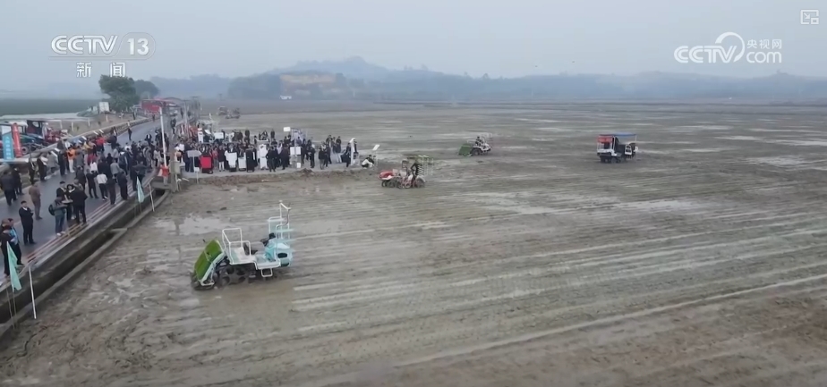 在廣東佛山,春播春耕作業(yè)正在進行。2025年,種植戶利用無人駕駛插秧機等設(shè)備,高效完成早稻插秧播種。