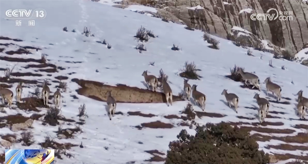 青海德令哈:成群巖羊現(xiàn)身雪后高原