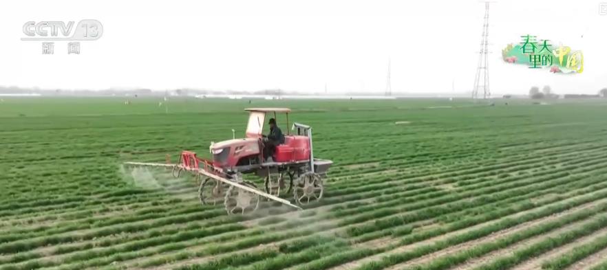 在山東濟南市,冬小麥正處于田間管理和產(chǎn)量形成的關(guān)鍵期,當(dāng)?shù)剞r(nóng)技人員綜合利用植保無人機、水肥一體化智慧滴灌等科技手段,精細化開展田間管理。