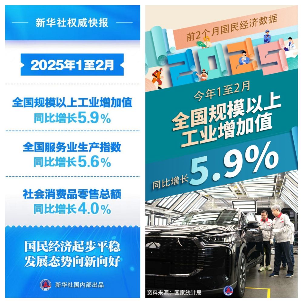 今年前2個(gè)月,工業(yè)服務(wù)業(yè)較快增長(zhǎng),消費(fèi)投資繼續(xù)改善,就業(yè)形勢(shì)總體穩(wěn)定,新質(zhì)生產(chǎn)力成長(zhǎng)壯大,經(jīng)濟(jì)運(yùn)行起步平穩(wěn),發(fā)展態(tài)勢(shì)向新向好,展現(xiàn)中國經(jīng)濟(jì)強(qiáng)大韌性。