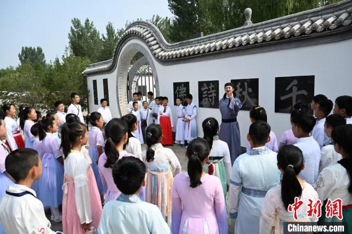 來(lái)自省內(nèi)外的學(xué)生在王維水墨小鎮(zhèn)參加研學(xué)活動(dòng)。(資料圖片) 吳遵民 攝