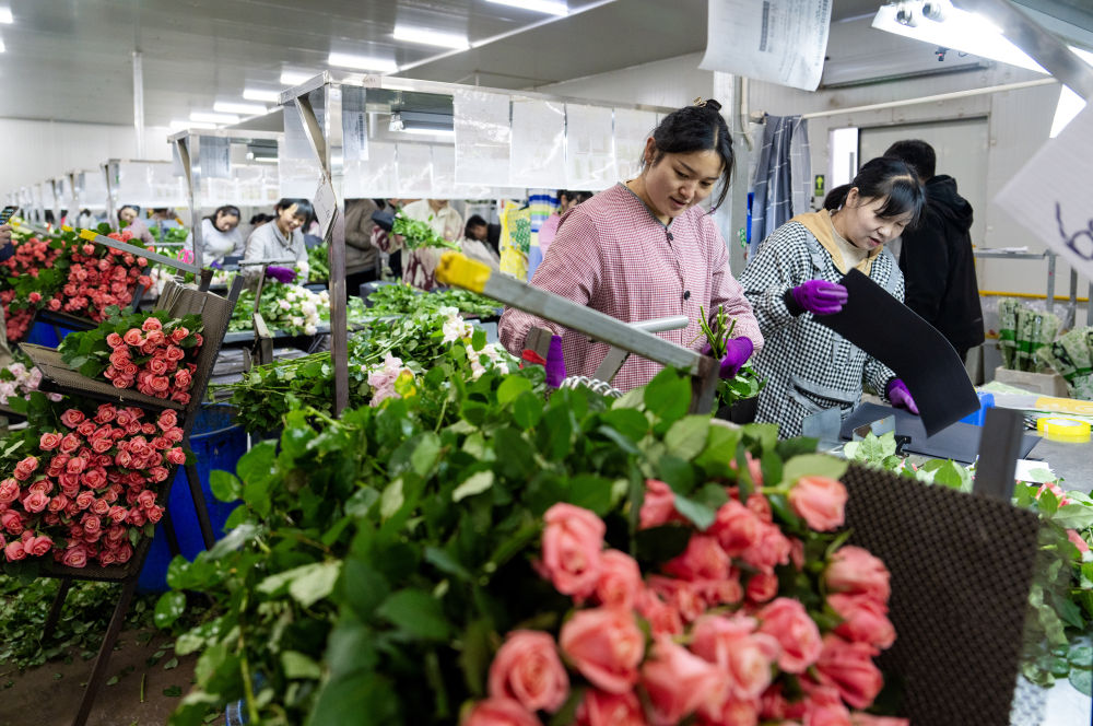近日,工作人員在麗江現(xiàn)代花卉產業(yè)園包裝鮮花。新華社記者 陳欣波 攝