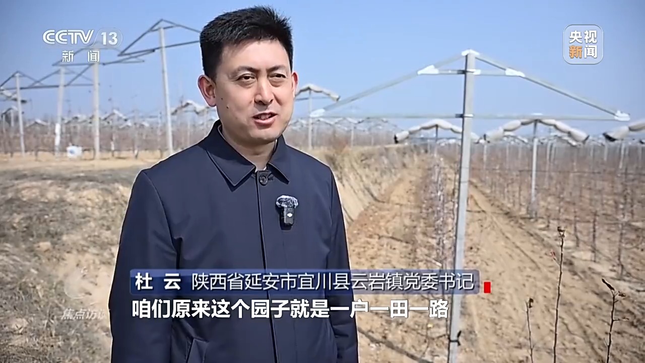 陜西省延安市宜川縣云巖鎮(zhèn)黨委書記 杜云:“原來這個(gè)園子是一戶一田一路,家家都要有生產(chǎn)路,原來有108塊,小田并大田以后并成了24塊,地界少了土地就多出來了,漲了95畝地。小田并大田以后以株代畝,土地不是按畝分,是按株分,一畝地能栽110株。如果你有一畝地就給你分110株,兩畝地分220株?!?/p>