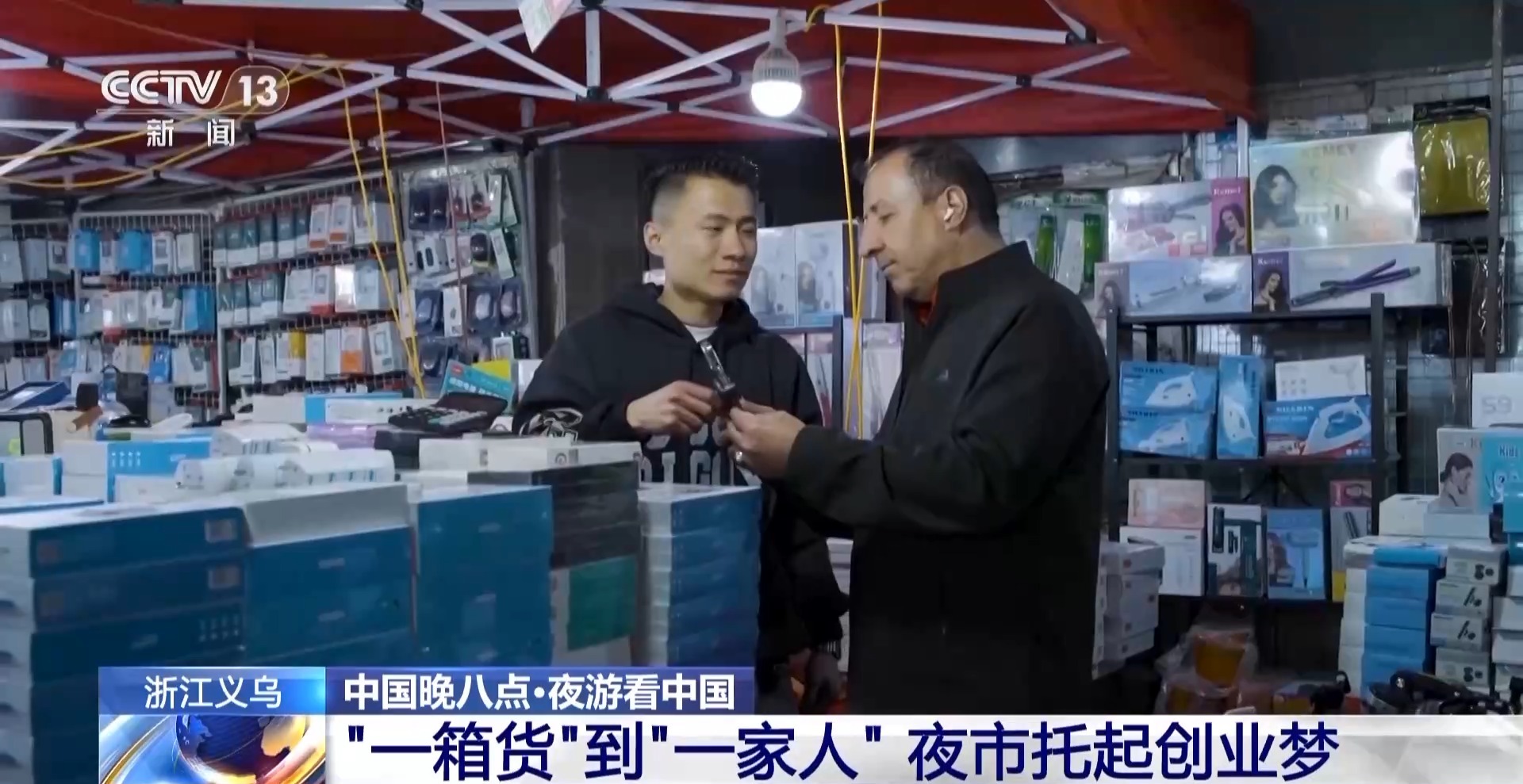 從一件貨品,到一箱貨,如今擁有一個固定的攤位,他不僅收獲了穩(wěn)定的客源,甚至和外國客商成了朋友,夜市讓他收獲了事業(yè),讓他遇見了自己的另一半,他說,在夜市讓他覺得“生活,就是要生機(jī)勃勃地奮斗著”。