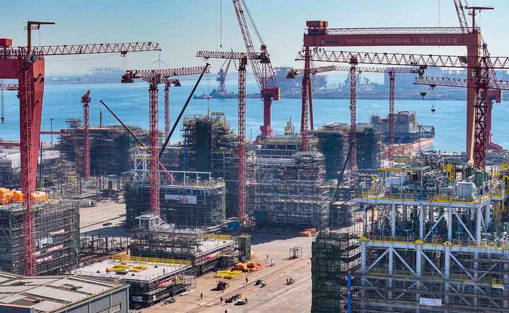 這是3月21日拍攝的天津博邁科海洋工程股份有限公司廠(chǎng)區(qū)一景(無(wú)人機(jī)照片)。新華社記者 趙子碩 攝