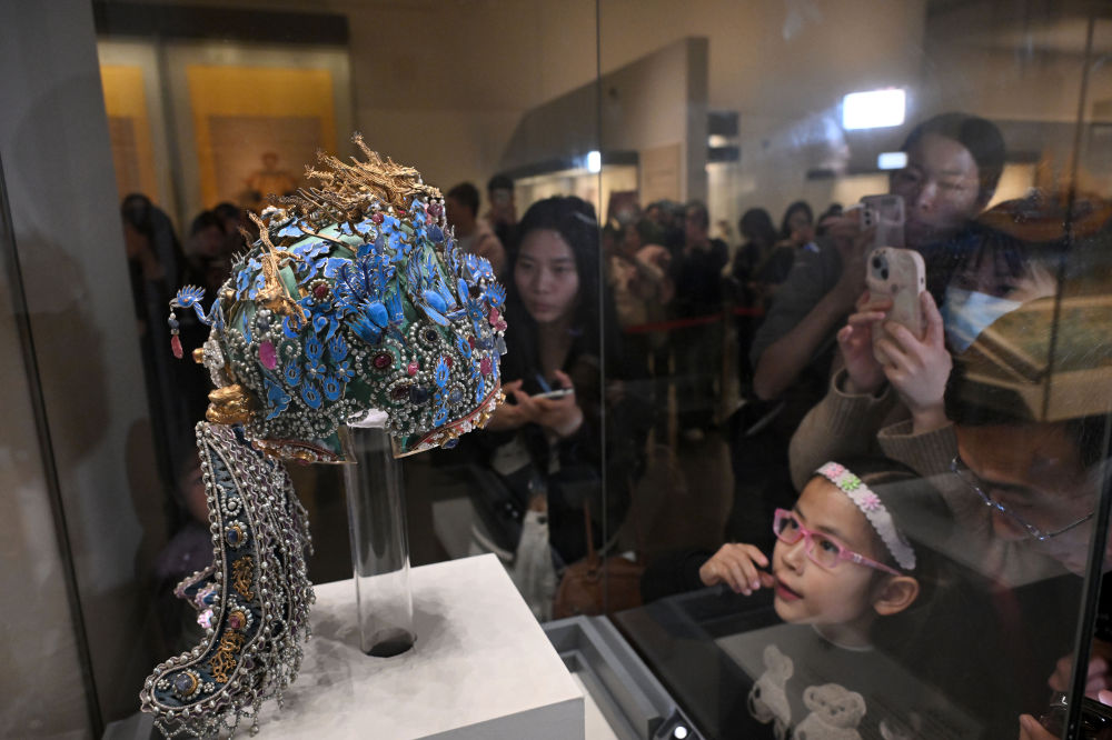3月25日,觀眾在北京中國國家博物館觀看明孝端皇后九龍九鳳冠。(新華社記者 金良快 攝)