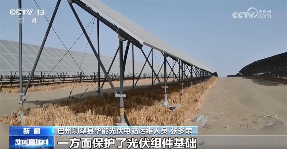 巴州尉犁縣華能光伏電站運(yùn)維人員張多榮稱:“大概兩個(gè)月時(shí)間就能抽穗發(fā)芽了,一方面保護(hù)了光伏組件基礎(chǔ)不被黃沙掩埋或掏空,另一方面改善了周圍環(huán)境?!?/p>