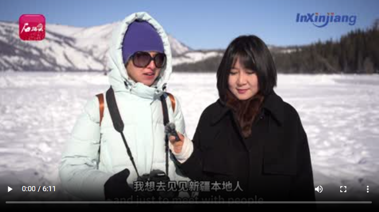 受邀做客本期《InXinjiang》欄目訪談的,是來自白俄羅斯的記者瑪麗娜。這是她第二次到新疆,走在喀納斯湖冰面上,她被眼前的美景和當(dāng)?shù)刎S富多彩的文化活動深深吸引?,旣惸入y掩內(nèi)心歡喜:“現(xiàn)代化基礎(chǔ)設(shè)施與自然美景相得益彰,這是我喜歡新疆的理由?!?/p>