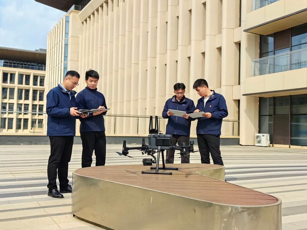 中國星網(wǎng)員工對無人機(jī)開展測試工作(3月28日攝)。新華社記者 齊雷杰 攝