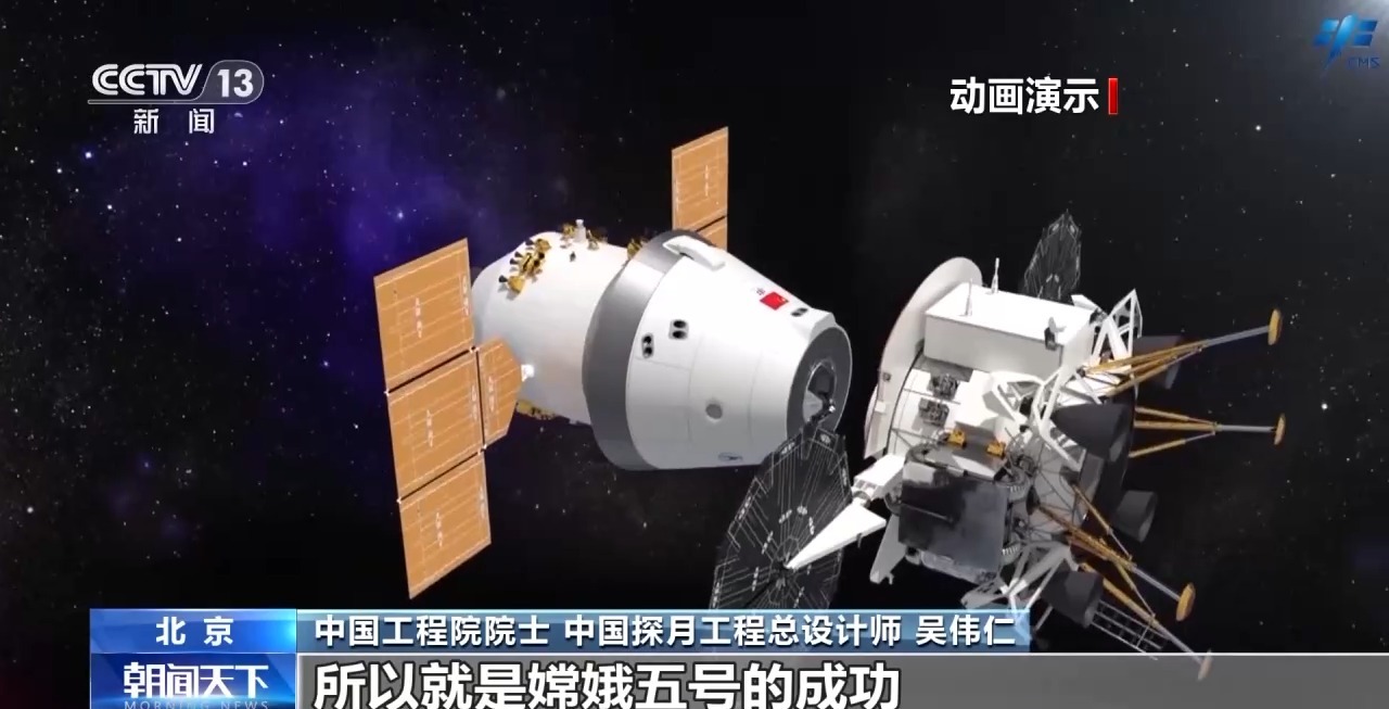 中國工程院院士 中國探月工程總設(shè)計(jì)師 吳偉仁:當(dāng)時(shí)就想利用嫦娥五號(hào)來驗(yàn)證我們后續(xù)載人登月技術(shù),載人登月就是在軌道上交會(huì)對接,然后人下去探測,探測完后月面起飛,在軌道上交會(huì)對接,然后人再進(jìn)入返回器,返回器再和軌道器脫離,脫離過后,返回器把人送回地球。所以嫦娥五號(hào)的成功,為未來我們載人登月奠定基礎(chǔ),幾乎把所有的關(guān)鍵技術(shù)都驗(yàn)證了一遍。