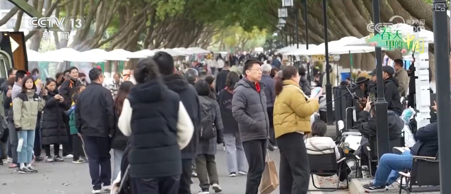 每逢周末,村口的梨花市集熱鬧開場,游客伴著音樂賞美景、品咖啡、嘗小吃,感受鄉(xiāng)村春日消費新場景。