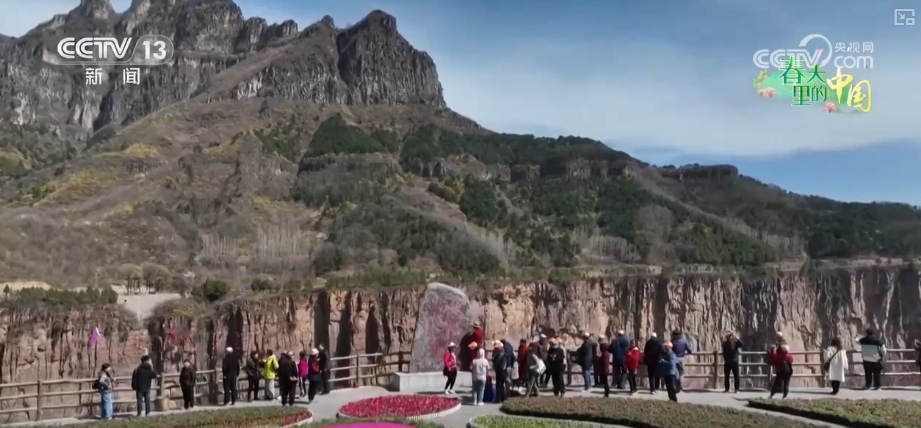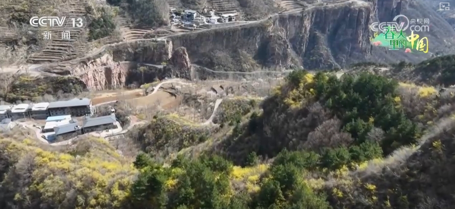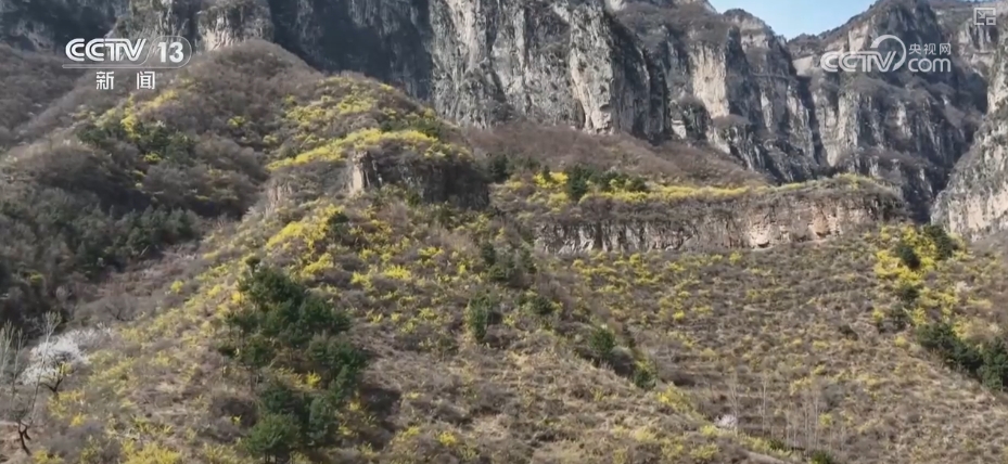 在新鄉(xiāng)輝縣市南太行萬仙山景區(qū),海拔1300米的山腰上,三五成簇的連翹花盛開在崖壁、山坡和溝谷當中,為巍峨的太行山披上一身“黃金甲”。淡雅的黃色花瓣在溫柔的春光里隨風(fēng)舞動、芳香四溢,游客們在山巒花海中感受濃濃春意。