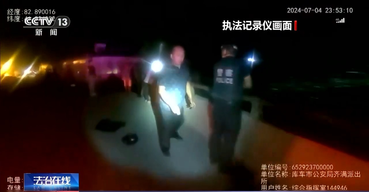 2024年7月4日晚上11時50分左右,新疆庫車市公安局齊滿派出所的五位民輔警正在巡邏,突然,上級發(fā)來一則警情通報,有三名群眾在附近落水,請即刻前往救援。