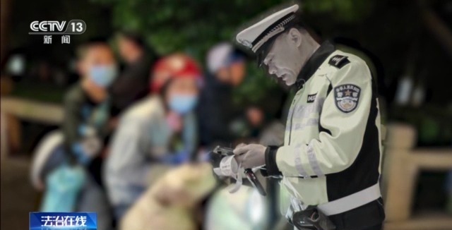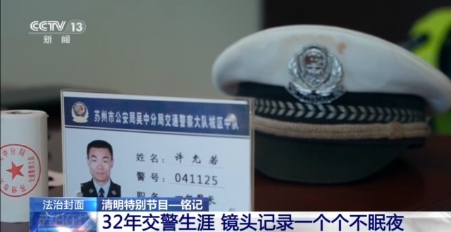 在執(zhí)法現(xiàn)場視頻中,已近凌晨1點,鏡頭記錄下了許允若最為平常的不眠之夜。32年的交警生涯,像這樣的不眠之夜數(shù)也數(shù)不清,1萬多天的早晚高峰,每天10個小時在路上,他是那個永遠在路上的人。