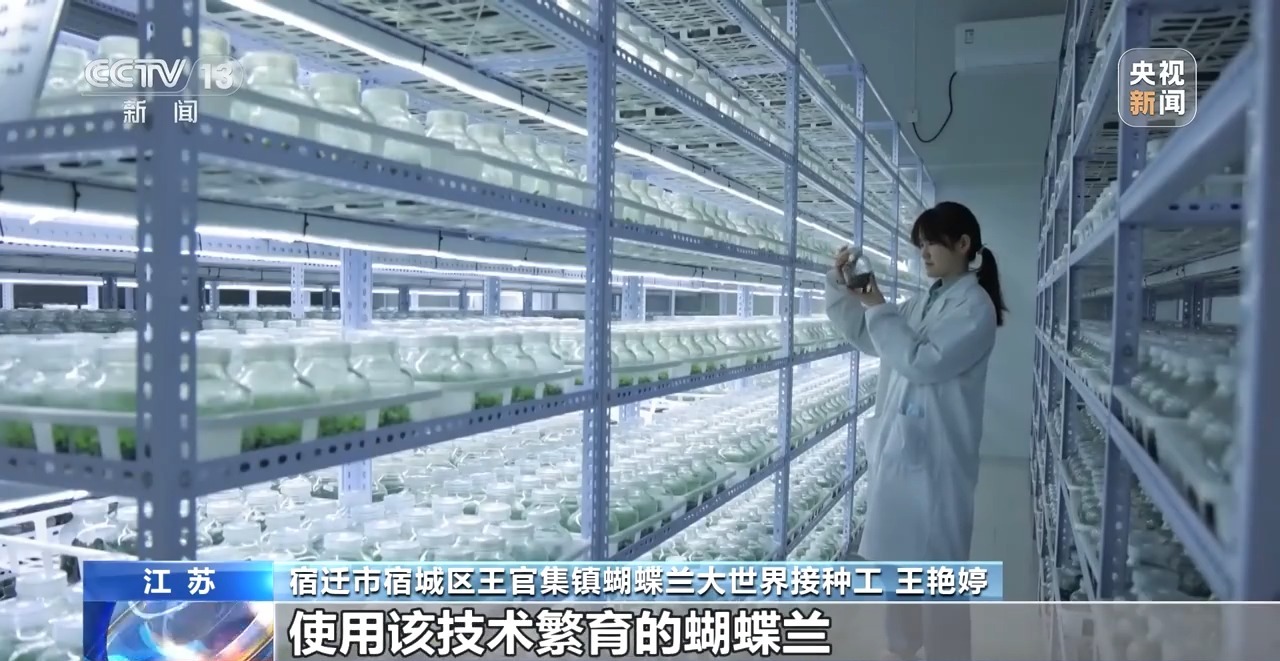 宿遷市宿城區(qū)王官集鎮(zhèn)蝴蝶蘭大世界接種工 王艷婷:繁殖周期短,能夠通過人工自由調(diào)整光照、溫度、濕度。使用該技術(shù)繁育的蝴蝶蘭整齊度高、生長速度快。