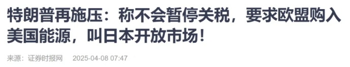 特朗普今天剛要求歐盟,加大購(gòu)買美國(guó)天然氣和石油,更要求日本放開(kāi)農(nóng)產(chǎn)品、汽車等關(guān)鍵市場(chǎng)。