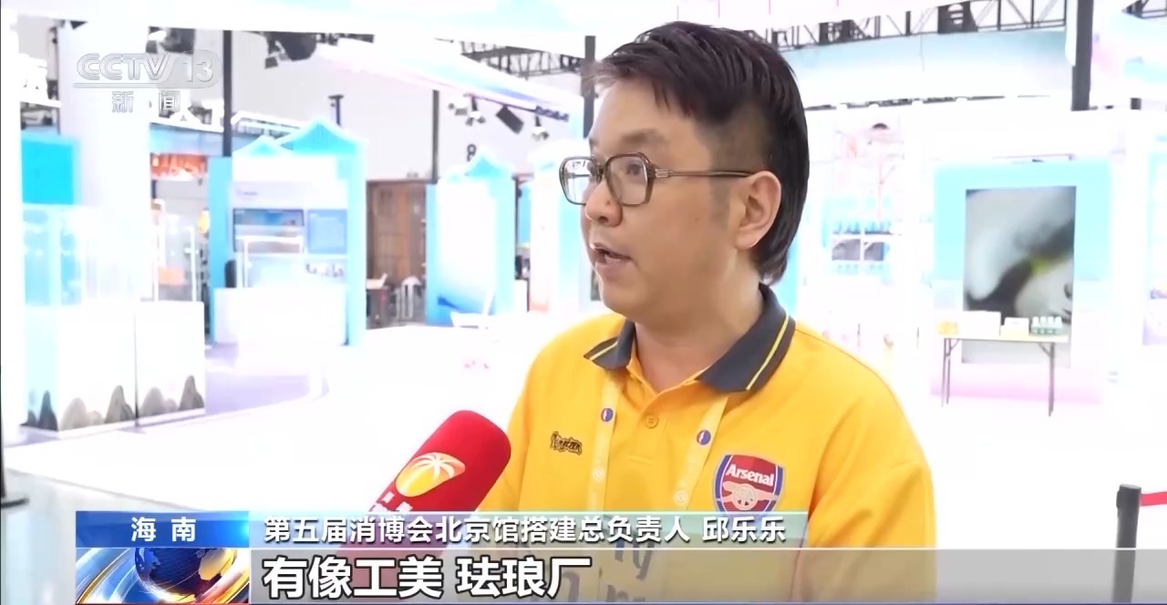 第五屆消博會北京館搭建總負責(zé)人 邱樂樂:這次北京也帶來25家企業(yè),有像工美、琺瑯廠、菜市口百貨這些老企業(yè),也有新媒體的企業(yè)。