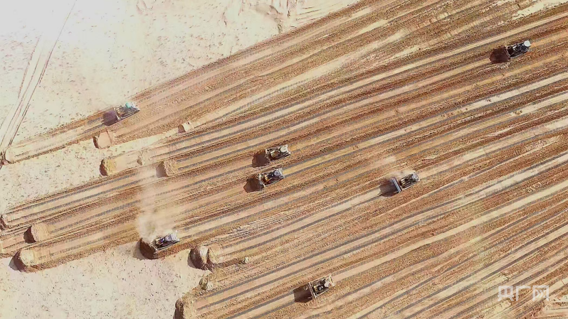 “民豐縣經(jīng)過無數(shù)次試驗(yàn),選擇蘆葦鋪設(shè)草方格沙障,帶動(dòng)了蘆葦收割產(chǎn)業(yè),參與收割的農(nóng)牧民人均增收7740元左右。”賈磊說。
