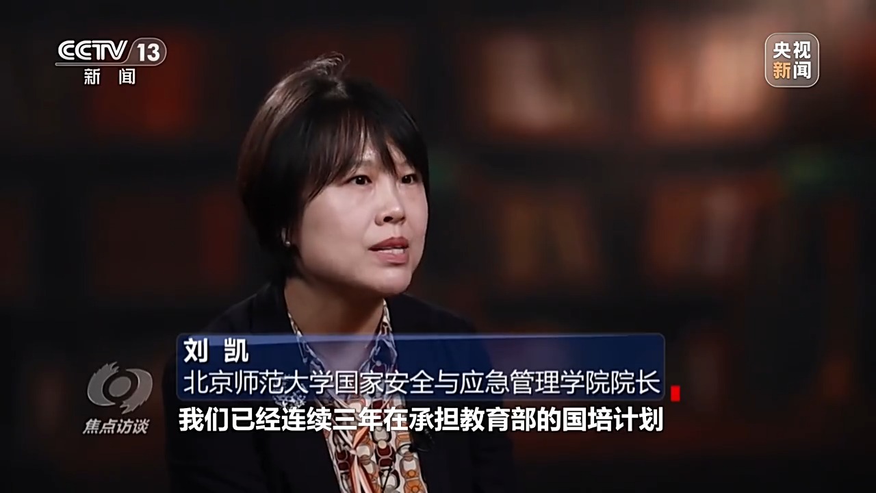 北京師范大學國家安全與應急管理學院院長 劉凱:我們已經(jīng)連續(xù)三年承擔教育部的國培計劃。國培計劃就是給全國的中小學教師講授國家安全相關的基本知識,等他們回到自己的學校,在他們?nèi)粘J谡n的時候,就能夠把國家安全的知識融入數(shù)學課程、物理課程,包括其他一些課程中,這是一個非??沙掷m(xù)的路徑。