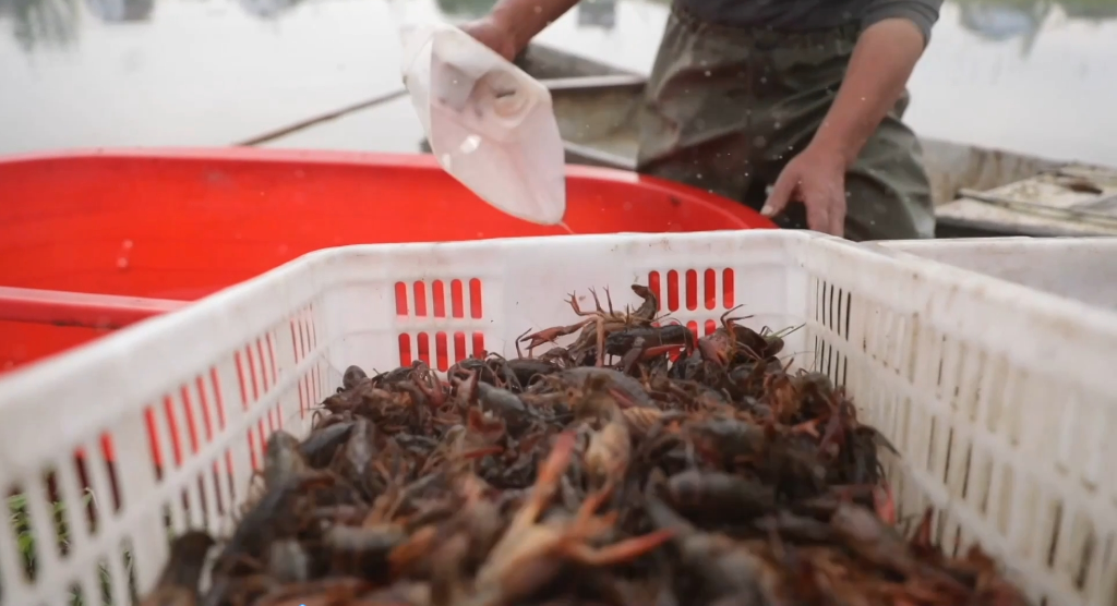 剛出水的小龍蝦被立即送往分揀中心,進行質量檢驗和稱重分級。分揀線上,分揀工岳臘春戴著橡膠手套,指尖翻飛間完成了龍蝦的分級。岳臘春說,“我們是發(fā)月工資,一個月5000元,一天工作按貨的多少來定。”