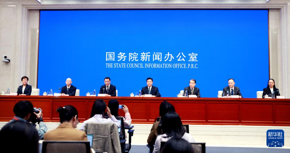 4月27日,國務(wù)院新聞辦公室在北京舉行新聞發(fā)布會,商務(wù)部副部長盛秋平、財政部稅政司司長賈榮鄂、文化和旅游部產(chǎn)業(yè)發(fā)展司司長繆沐陽、海關(guān)總署口岸監(jiān)管司司長夏俊、稅務(wù)總局貨物和勞務(wù)稅司司長謝文、中國民航局運(yùn)輸司司長徐青介紹優(yōu)化離境退稅政策擴(kuò)大入境消費(fèi)有關(guān)情況,并答記者問。新華社記者 潘旭 攝