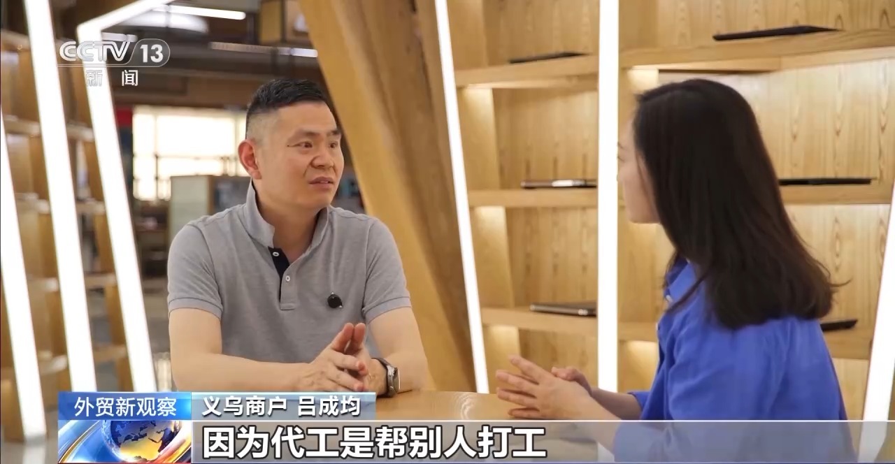 義烏商戶 呂成均:我們不做代工,為什么?因?yàn)榇な菐蛣e人打工,自主品牌的話,我們自己去發(fā)展。一定要這樣走,因?yàn)椴蛔銎放?,意味著你沒(méi)有話語(yǔ)權(quán);不做品牌,意味著你沒(méi)有生命力,意味著以后沒(méi)有未來(lái)。