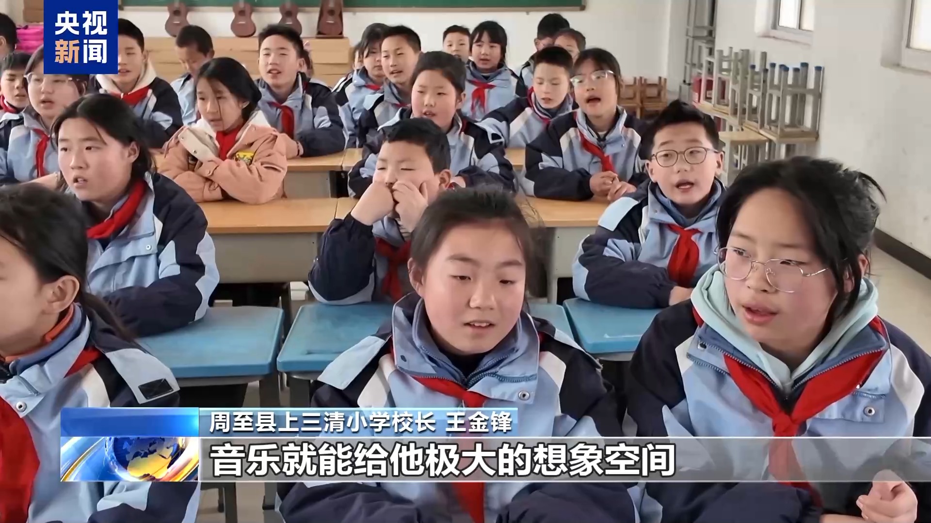 周至縣上三清小學(xué)校長 王金鋒:農(nóng)村學(xué)校大多是留守兒童,爸爸媽媽都在外面打工,爺爺奶奶在家里看護(hù)這些孩子,隔代教育。音樂就能給他極大的想象空間還有發(fā)展空間。孩子們首先對(duì)自我有一個(gè)認(rèn)知、提升,他覺得自己可以很自然地站到大家面前去展示自己的才藝。