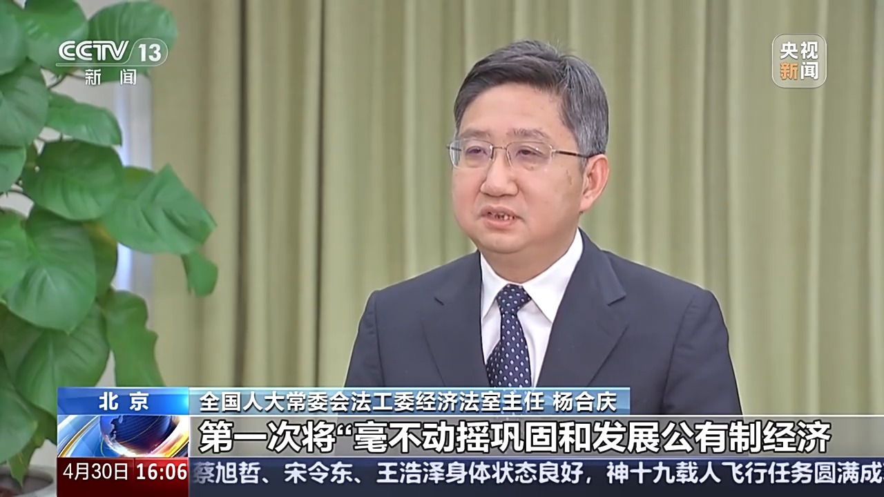 十四屆全國人大常委會第十五次會議今天(30日)表決通過了《中華人民共和國民營經(jīng)濟促進法》,自2025年5月20日起施行。作為我國第一部專門關(guān)于民營經(jīng)濟發(fā)展的基礎(chǔ)性法律,不僅首次將"兩個毫不動搖"寫入其中,更以立法形式確立了民營經(jīng)濟的法律主體地位。這部專項立法將如何破除市場壁壘?怎樣為民營企業(yè)保駕護航?全國人大常委會法工委經(jīng)濟法室主任楊合慶接受了我們的專訪,就該法的相關(guān)問題進行了解讀。