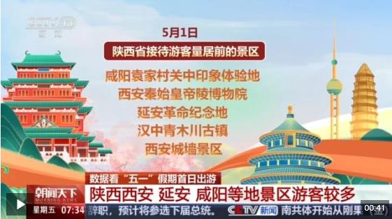 “五一”假期第一天,陜西省監(jiān)測(cè)的51個(gè)重點(diǎn)旅游景區(qū)共接待游客53.49萬(wàn)人次,旅游經(jīng)營(yíng)收入4930.89萬(wàn)元。