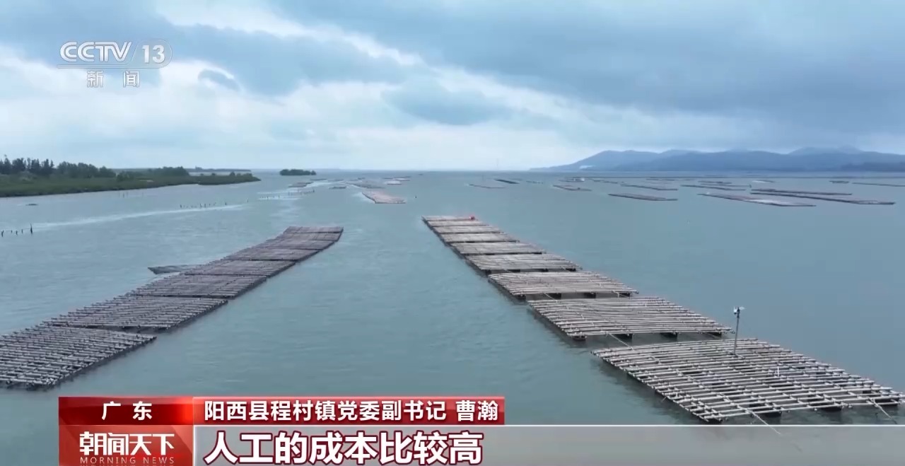 陽西縣程村鎮(zhèn)黨委副書記 曹瀚:以前的立柱式養(yǎng)殖必須要有水泥樁,還要打樁進(jìn)去,人工的成本比較高。延繩吊養(yǎng)生蠔的時(shí)候,我們能夠及時(shí)根據(jù)海水咸濕度情況進(jìn)行轉(zhuǎn)移,有利于蠔盡快長大。