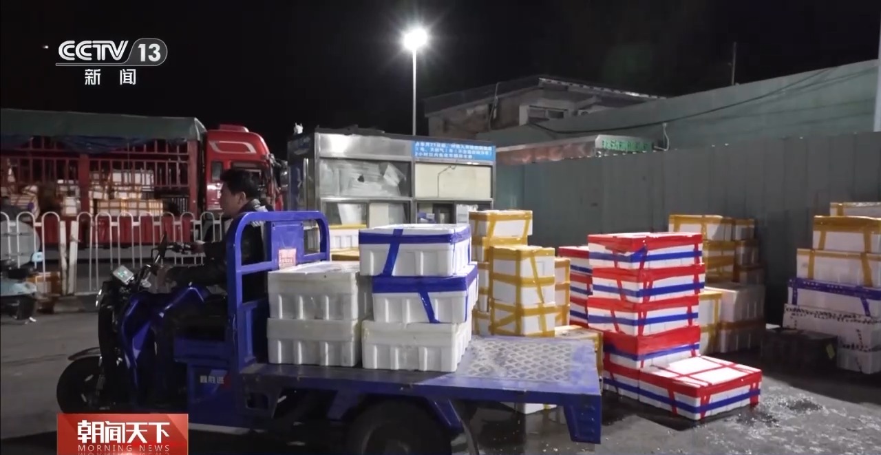 總臺(tái)央視記者 張琪:在北京大紅門京深海鮮批發(fā)市場,凌晨2點(diǎn)半,進(jìn)場的車輛絡(luò)繹不絕,物流停車場也停滿了正在卸貨的貨車。