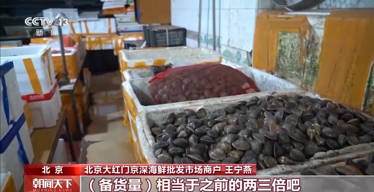北京大紅門京深海鮮批發(fā)市場商戶 王寧燕:根據(jù)“五一”的情況,扇貝、生蠔這種適合聚餐的,我們會(huì)多備一點(diǎn),備貨量相當(dāng)于之前的兩三倍吧。