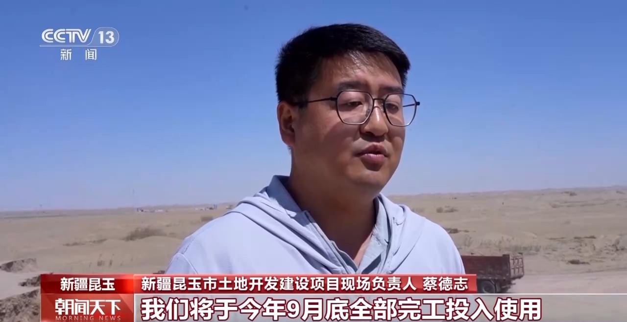 新疆昆玉市土地開發(fā)建設(shè)項目現(xiàn)場負責人 蔡德志:我們將于今年9月底全部完工投入使用,已完成現(xiàn)場總進度的75%。