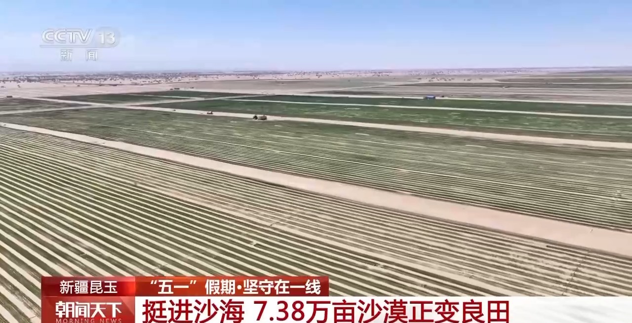 當大多數(shù)人享受悠閑的假期時,鏖戰(zhàn)在沙海深處的勞動者沒有停歇。在位于塔克拉瑪干沙漠南緣的新疆昆玉市,7.38萬畝土地開發(fā)建設(shè)項目進入攻堅階段,上百臺裝載機、平地機來回穿梭進行平沙作業(yè)。