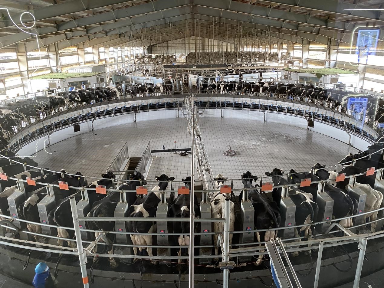 圖為天瑞祥牧場(chǎng)全自動(dòng)轉(zhuǎn)盤式擠奶機(jī)。冶明偉攝