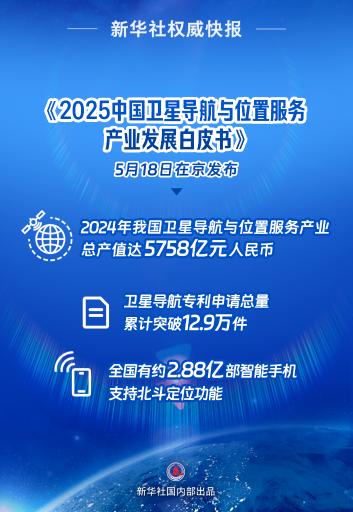 5月18日在京發(fā)布的《2025中國衛(wèi)星導航與位置服務(wù)產(chǎn)業(yè)發(fā)展白皮書》顯示,2024年我國衛(wèi)星導航與位置服務(wù)產(chǎn)業(yè)總產(chǎn)值達5758億元人民幣,同比增長7.39%;衛(wèi)星導航專利申請總量累計突破12.9萬件,繼續(xù)保持全球領(lǐng)先……