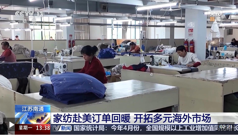家紡產業(yè)是江蘇南通的傳統(tǒng)產業(yè)、特色產業(yè),年交易額達2500億元。在中美關稅政策調整之后,南通家紡產業(yè)赴美訂單逐漸恢復。
