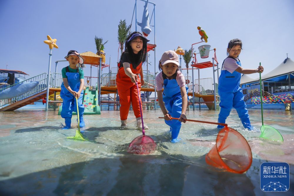 5月24日,游客在河北省遵化市南山常樂(lè)谷景區(qū)水世界參加親子撈魚(yú)活動(dòng)。新華社發(fā)(劉滿倉(cāng)攝)