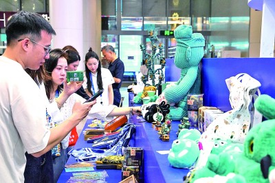 創(chuàng)意滿滿的文創(chuàng)產(chǎn)品帶來時尚潮流氣息——敦煌研究院的飛天系列絲巾、陜西歷史博物館的唐代仕女盲盒展現(xiàn)地域特色;在甘肅主題館,圓頭圓腦、憨態(tài)可掬的小神獸“蘭小五”成為引人駐足的“明星”;在“湖湘文創(chuàng)”展區(qū),竹片制作的扇子、飛盤、足球等文創(chuàng)產(chǎn)品新意十足;在文創(chuàng)中國展區(qū),數(shù)十座文化場館帶來了基于文物開發(fā)的文創(chuàng)產(chǎn)品,觀眾紛紛參與文創(chuàng)盲盒、集章打卡等活動。